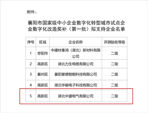 近日,襄阳市经济和信息化局正式公示了襄阳市国家级中小企业数字化转型城市试点企业数字化改造奖补(第一批)拟支持企业名单,米博app成功入选,标志着公司在数字化转型升级道路上又迈出了坚实一步。