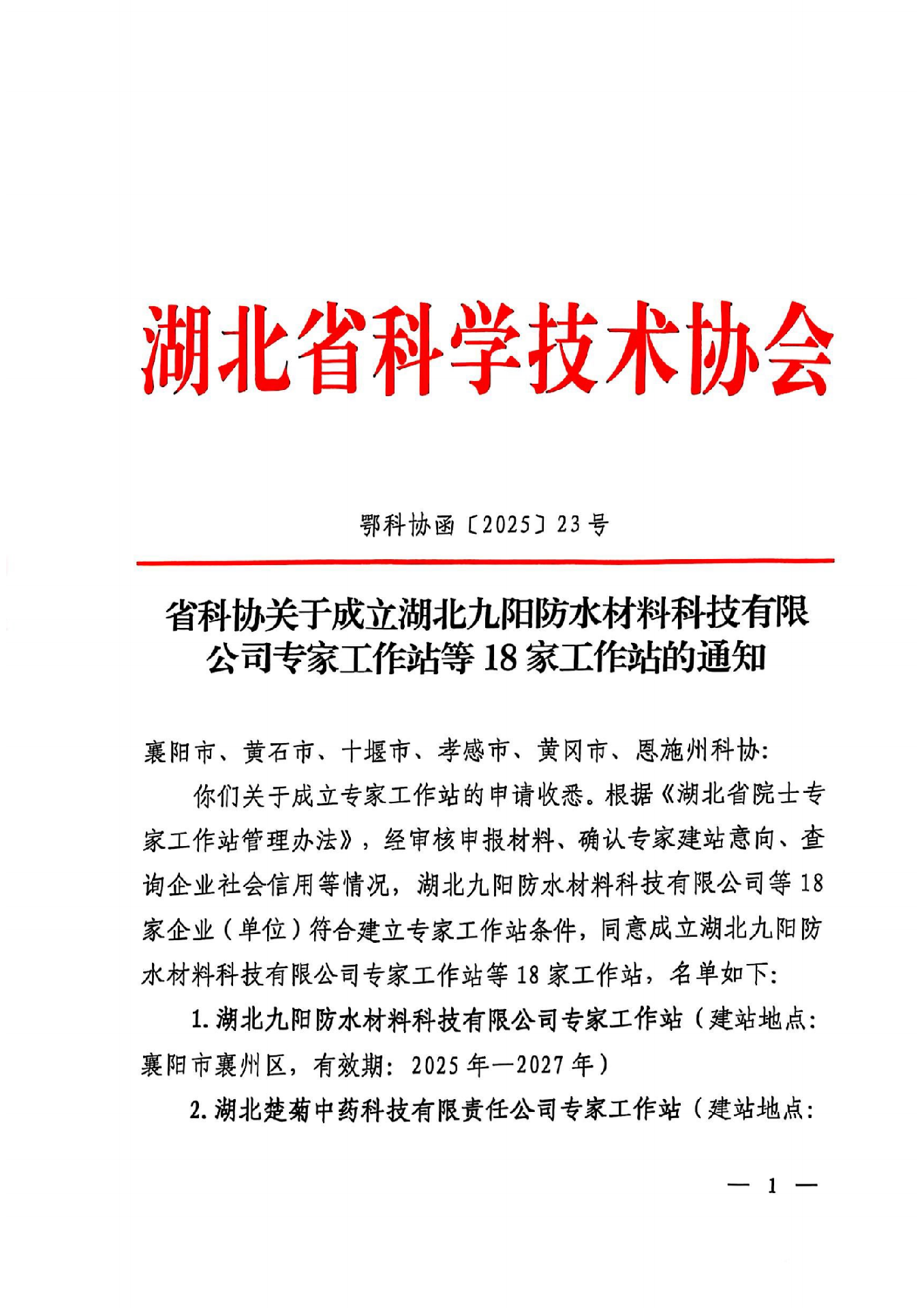 近日,湖北省科学技术协会发布《省科协关于成立湖北九阳放水材料科技有限公司专家工作站等18家工作站的通知》,米博app与华中科技大学熊永前教授团队合作建立的专家工作站正式获批为省级专家工作站。这一创新平台的建立,标志着公司在科技创新和产学研合作方面迈出关键一步,为公司未来的高质量发展注入新动能。