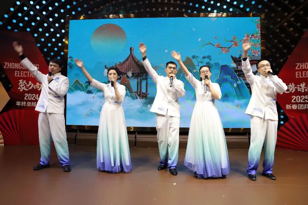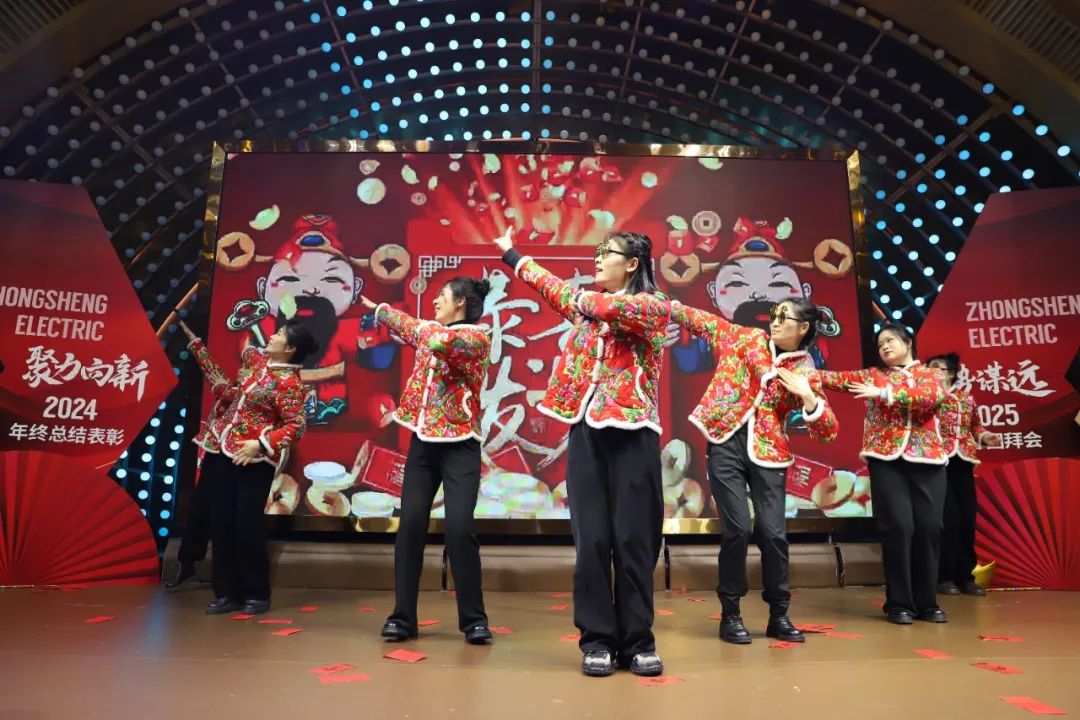 表彰结束后,活动进入了文艺表演环节。抽奖环节将现场气氛推向高潮,员工们怀着期待的心情参与其中,幸运者们的欢呼声和掌声此起彼伏。大合唱、舞蹈、齐天大圣表演等精彩节目轮番上演,展现了中盛电气员工多才多艺的一面,现场充满了欢声笑语。